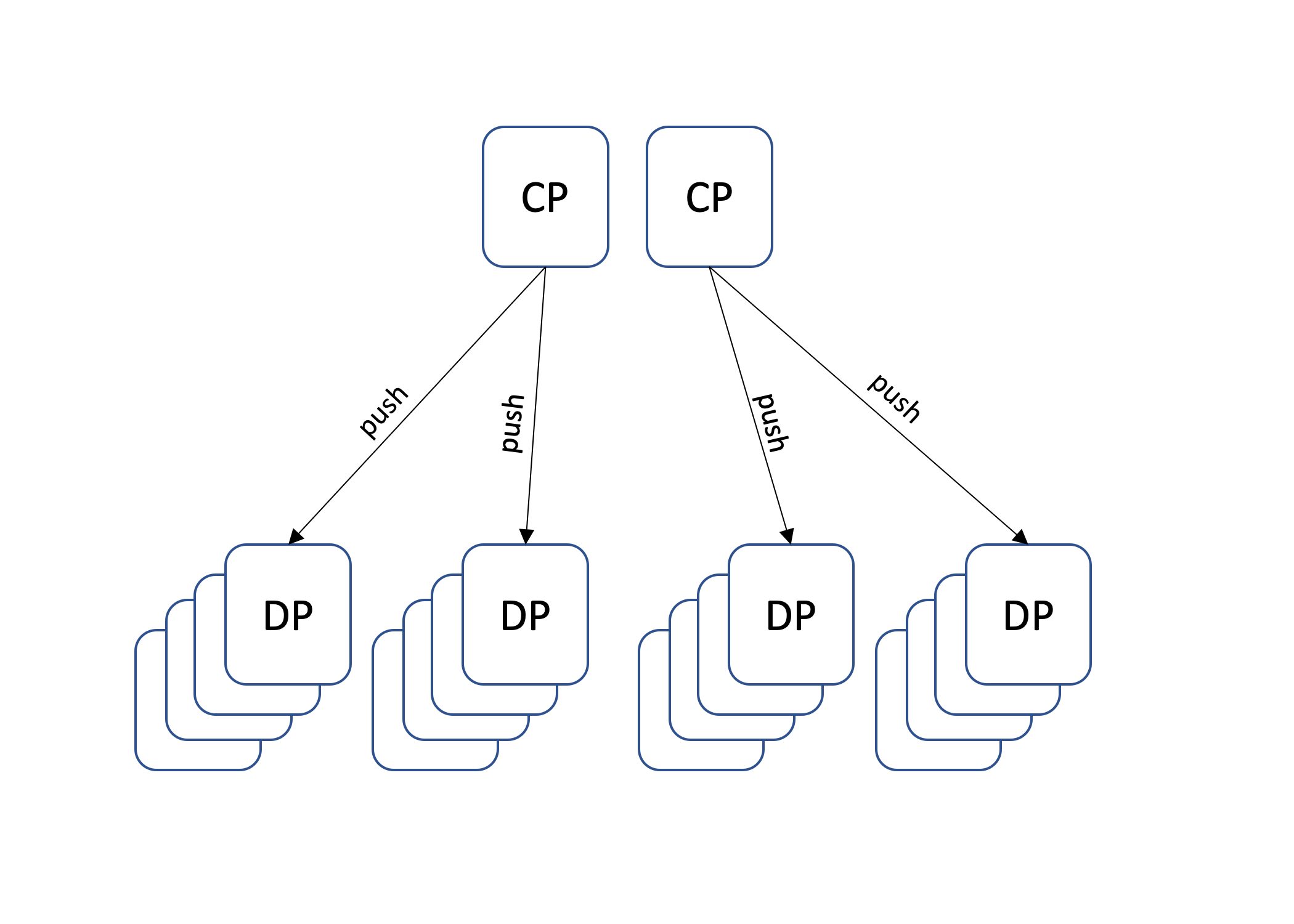 - The control plane needs a mechanism to make sure that every data plane server receives configuration updates from at least one control plane server and a mechanism to ensure that no control plane server is responsible for too many data plane servers.