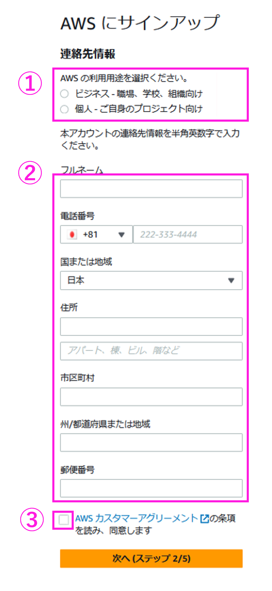 ステップ 2: 連絡先情報の入力
