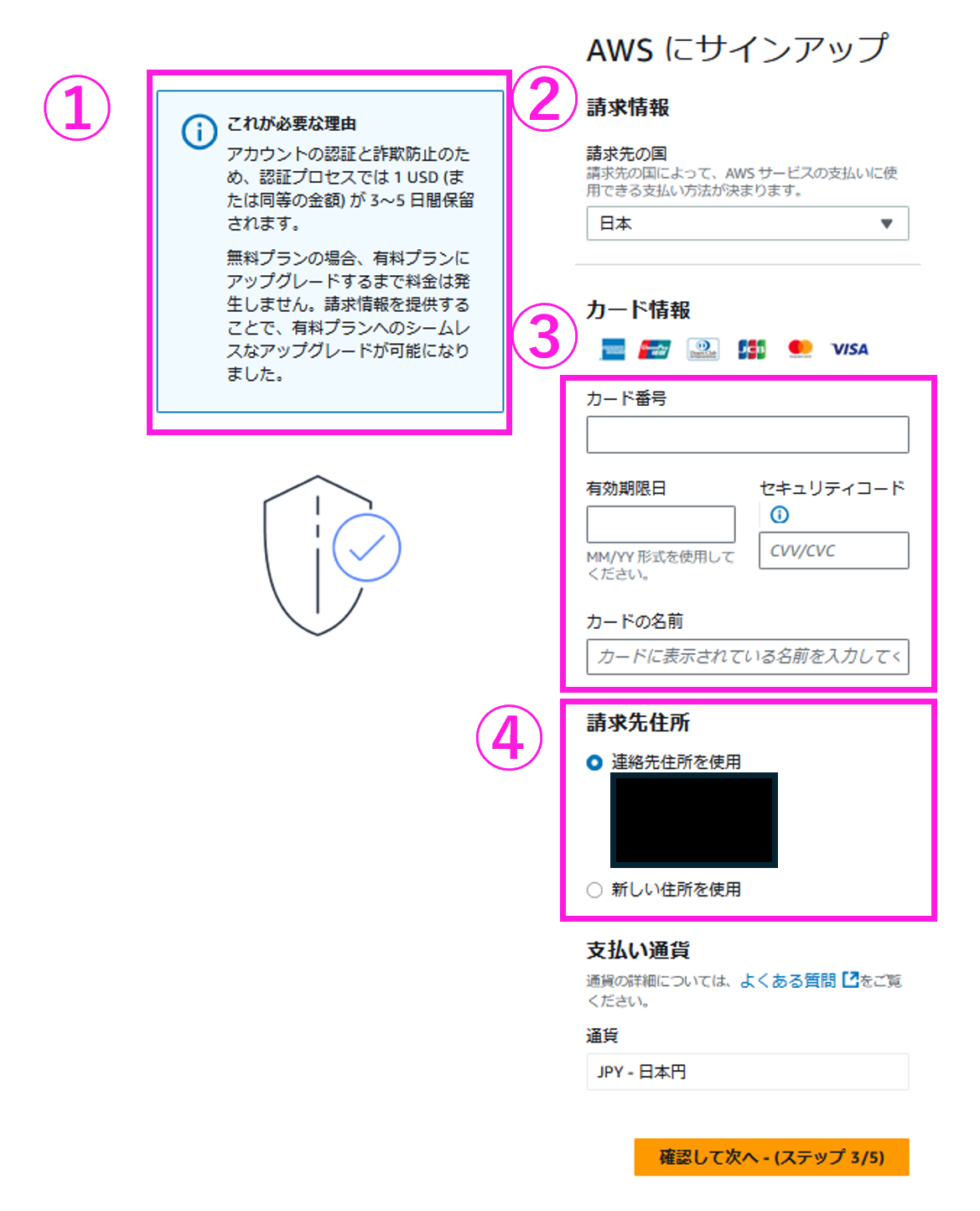 ステップ 3: 請求情報の入力